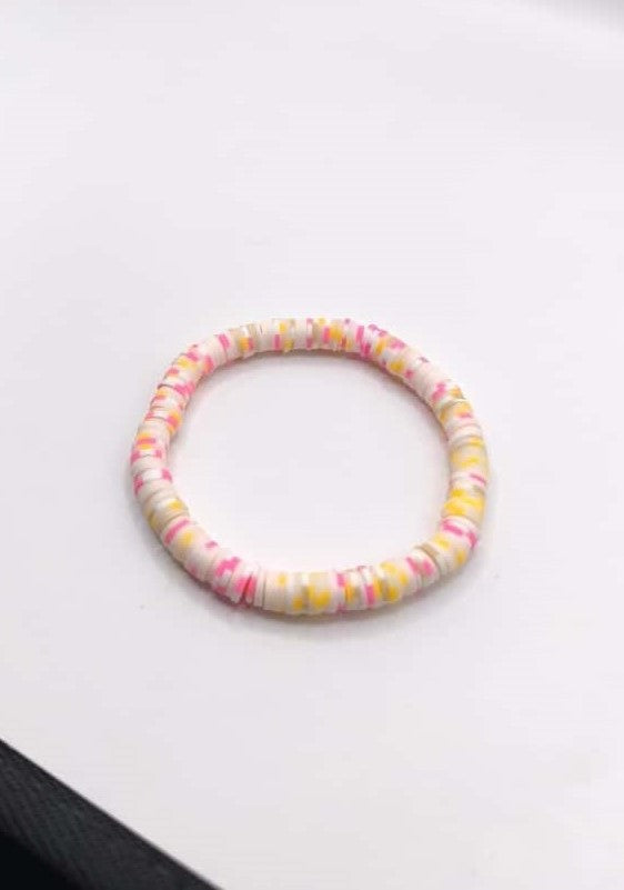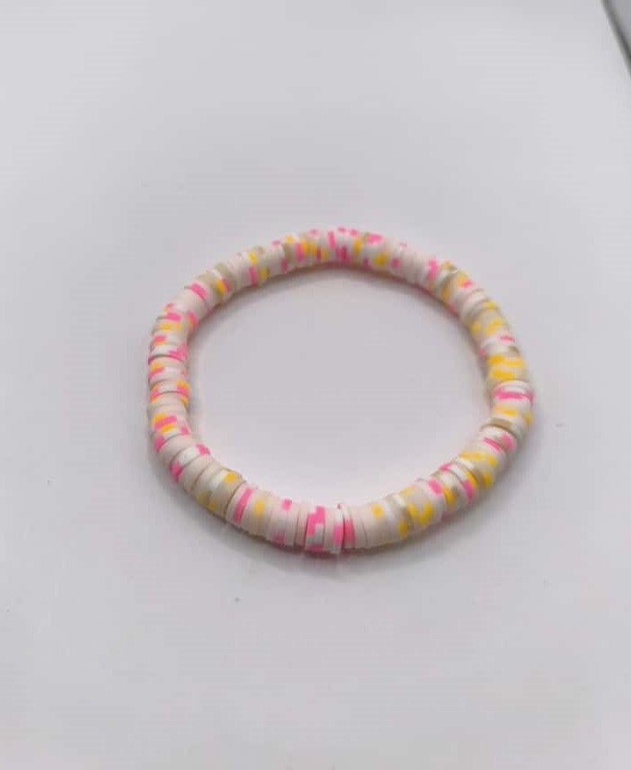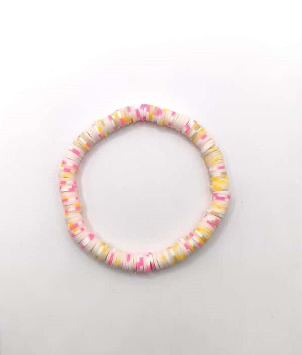 Bratara elastica Heishi alb, bej, roz, portocaliu