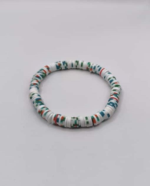 Bratara elastica Heishi albastru, verde, rosu si alb