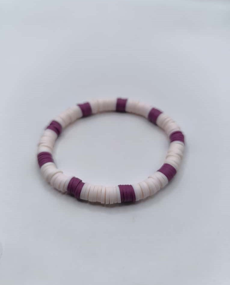 Bratara elastica Heishi mov si roz deschis