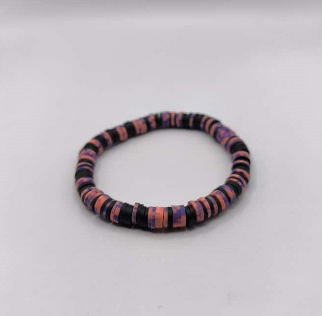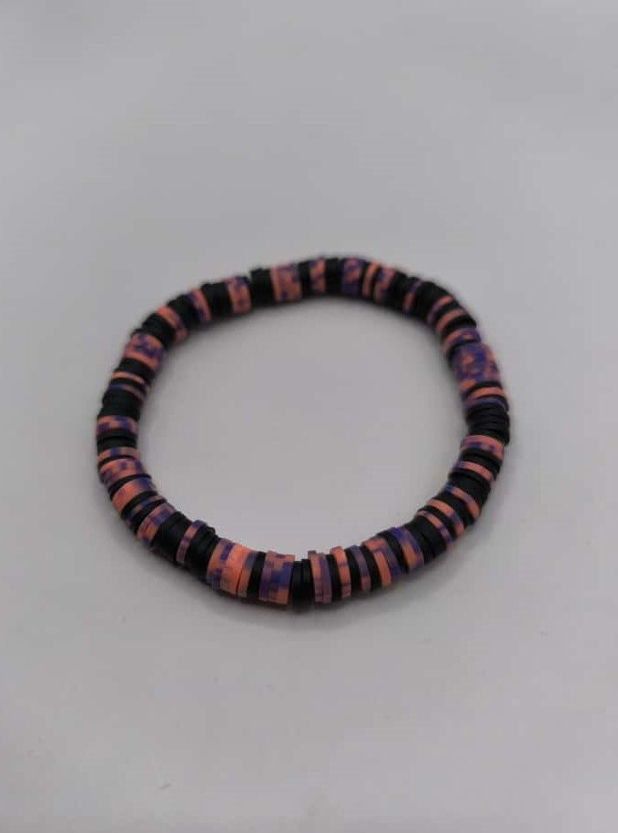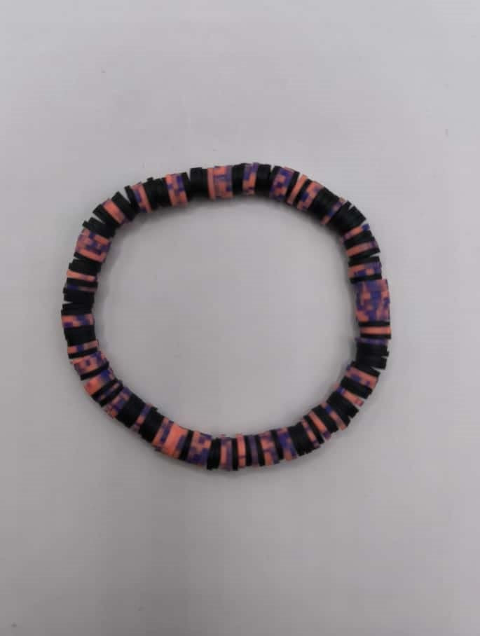 Bratara elastica realizata din discuri Heishi din argila polimerica, insirate pe ata elastica neagra.