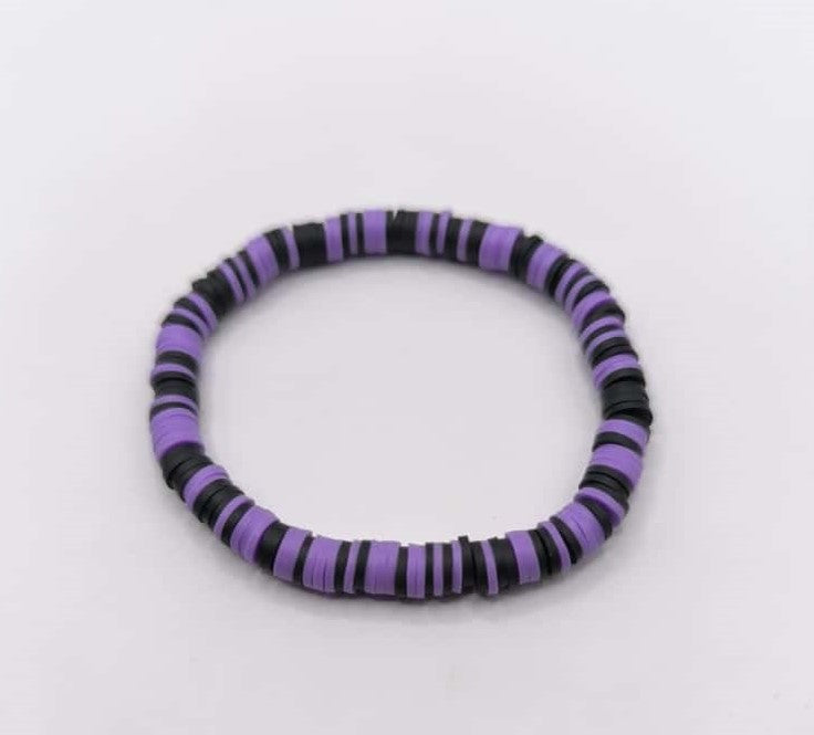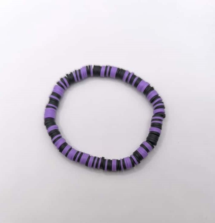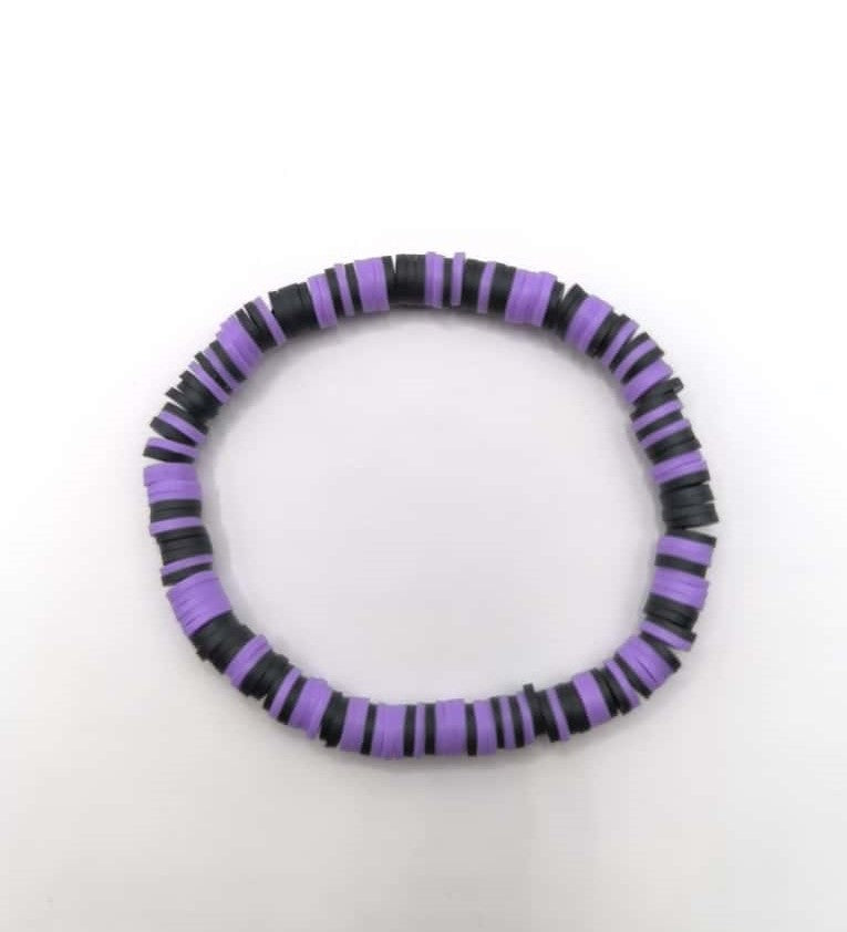 Bratara elastica realizata din discuri Heishi din argila polimerica, insirate pe ata elastica neagra.